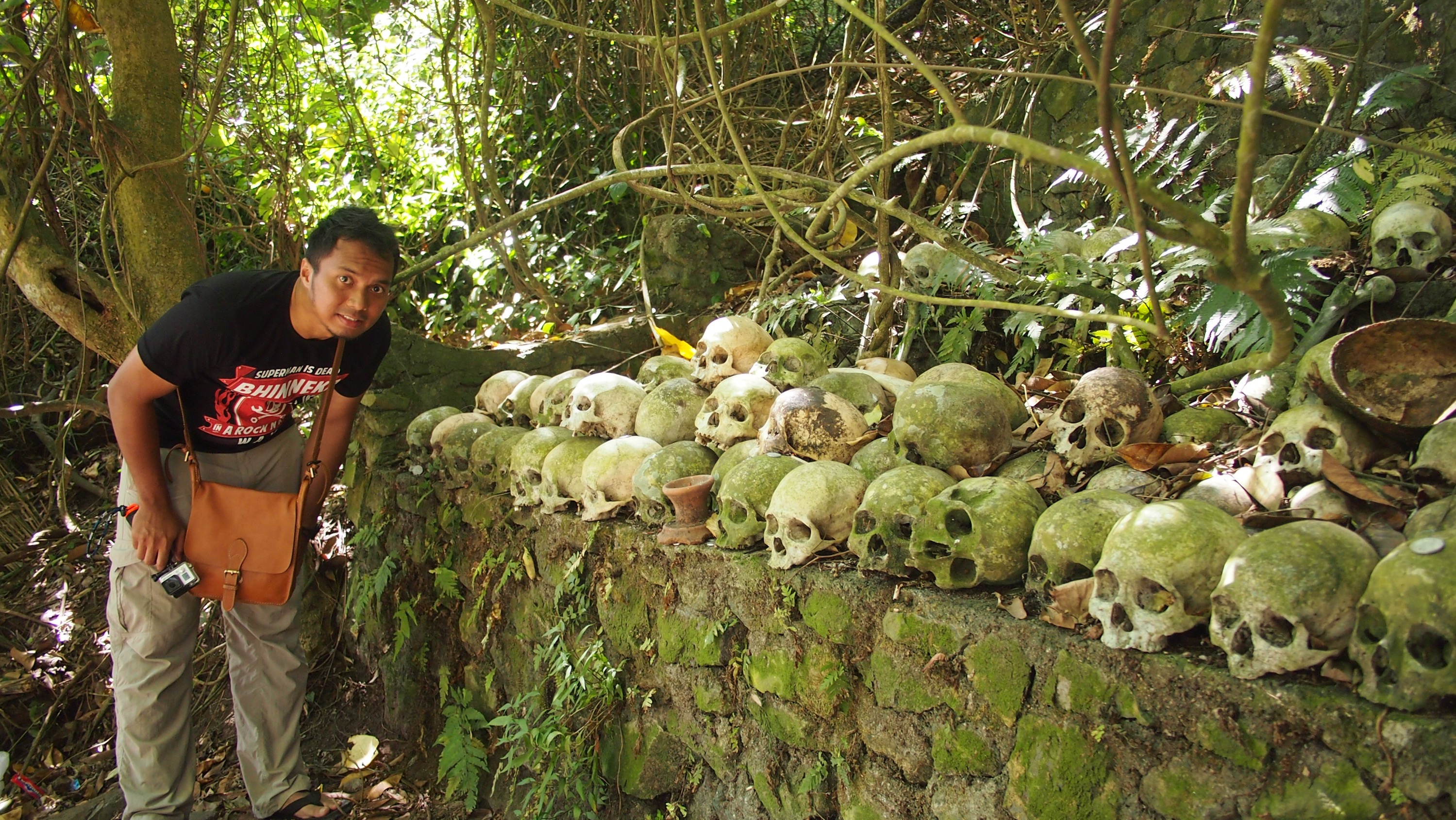 Ketika ke sana, pemandu arah bercerita bahawa beberapa tahun dahulu ada pengunjung (bule / mat saleh) cuba menyeludup keluar sebiji tengkorak. Entah bagaimana dia dapat mengambil satu tengkorak dan meletakkannya di dalam beg tanpa pengetahuan penjaga di situ. Di dalam perjalanan pulang, perahu yang dinaiki tidak boleh rapat ke pinggir desa kerana cuaca yang tidak tenang dan ribut. Kemudian barulah dia mengaku kepada pendayung sampan, dan berpatah balik memulangkan tengkorak tersebut.