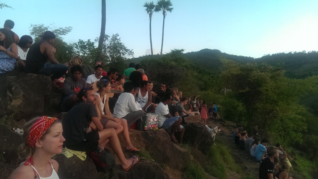 Petangnya kami duduk di lereng bukit, menyertai pemuda-pemudi lain sama-sama melihat matahari terbenam. Suasana ketika itu begitu senang. Ada yang menjual air, ada yang sedang memarkir motor, ada yang sedang mencari tempat paling sedap menangkap gambar, ada juga yang sedang memulakan bicara dengan, “How are you? Where are you come from?”