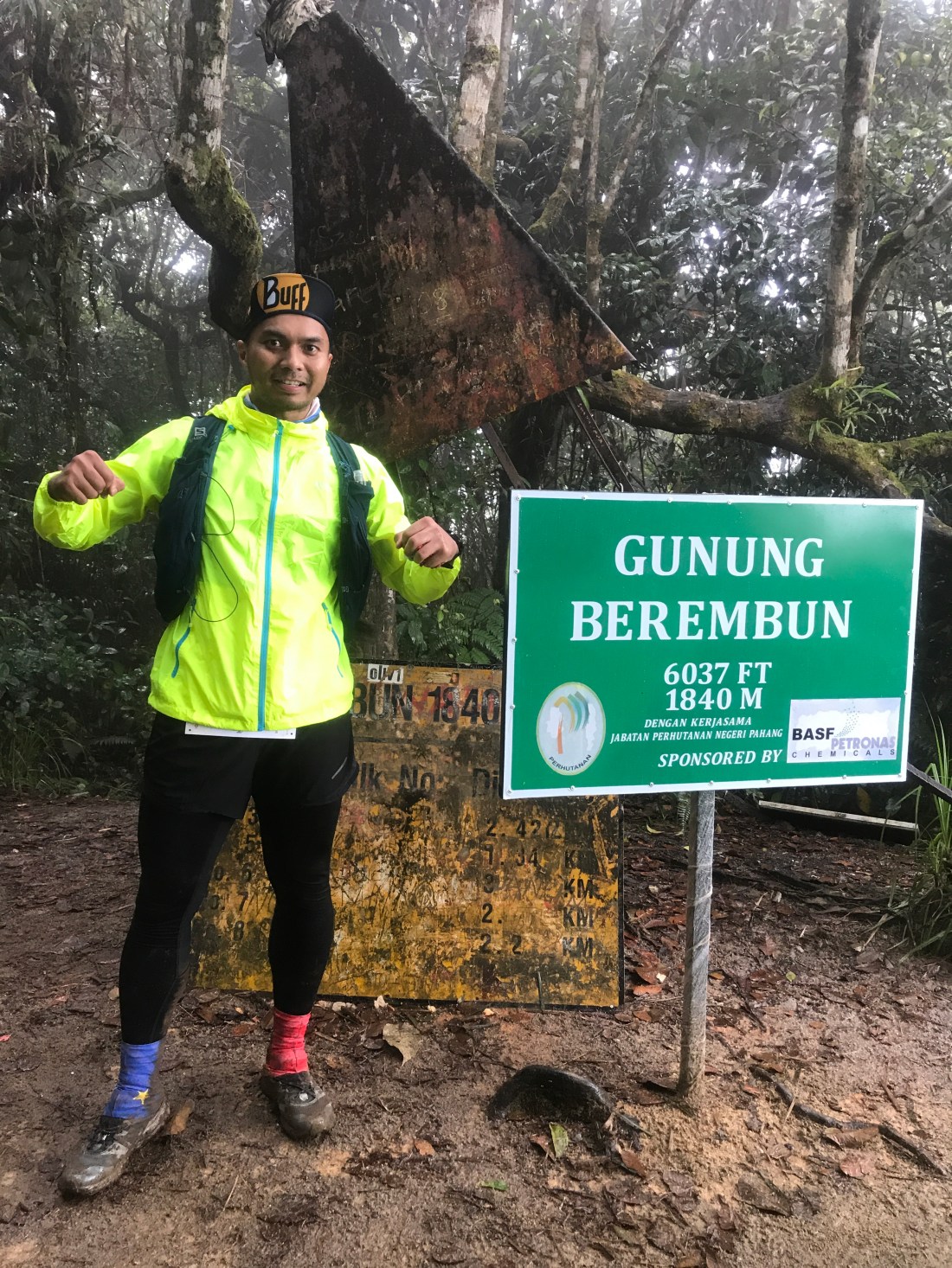 Akhirnya aku melepasi mereka semua dan terus mendaki dan mendaki. Tiba-tiba hujan turun dan cuaca bertukar menjadi lebih dingin. Dengan pantas aku mengeluarkan baju pematah angin (windbreaker). Pelarian diteruskan dengan keadaan denai yang semakin basah, licin, sejuk dan akar kayu yang keras seperti titanium. Akhirnya aku tiba di puncak Berembun. Disambut oleh beberapa krew Cultra yang menunggu.